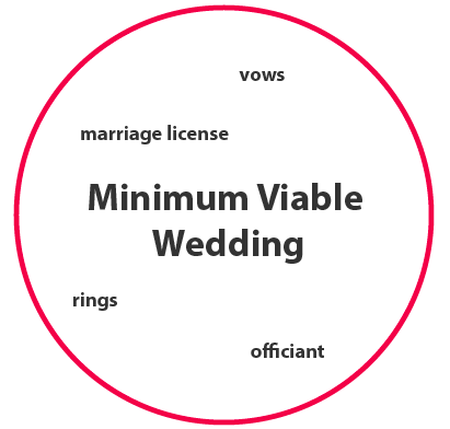 You need to identify your Minimum Viable Wedding—it might be you, your partner, a justice of the peace, and some heartfelt words scrawled on a piece of notebook paper.